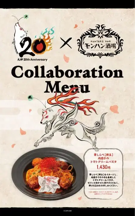 Hunter's Bar, the Monster Hunter cafe in Akihabara, will have a special Okami themed menu to celebrate the franchise's 20th anniversary.